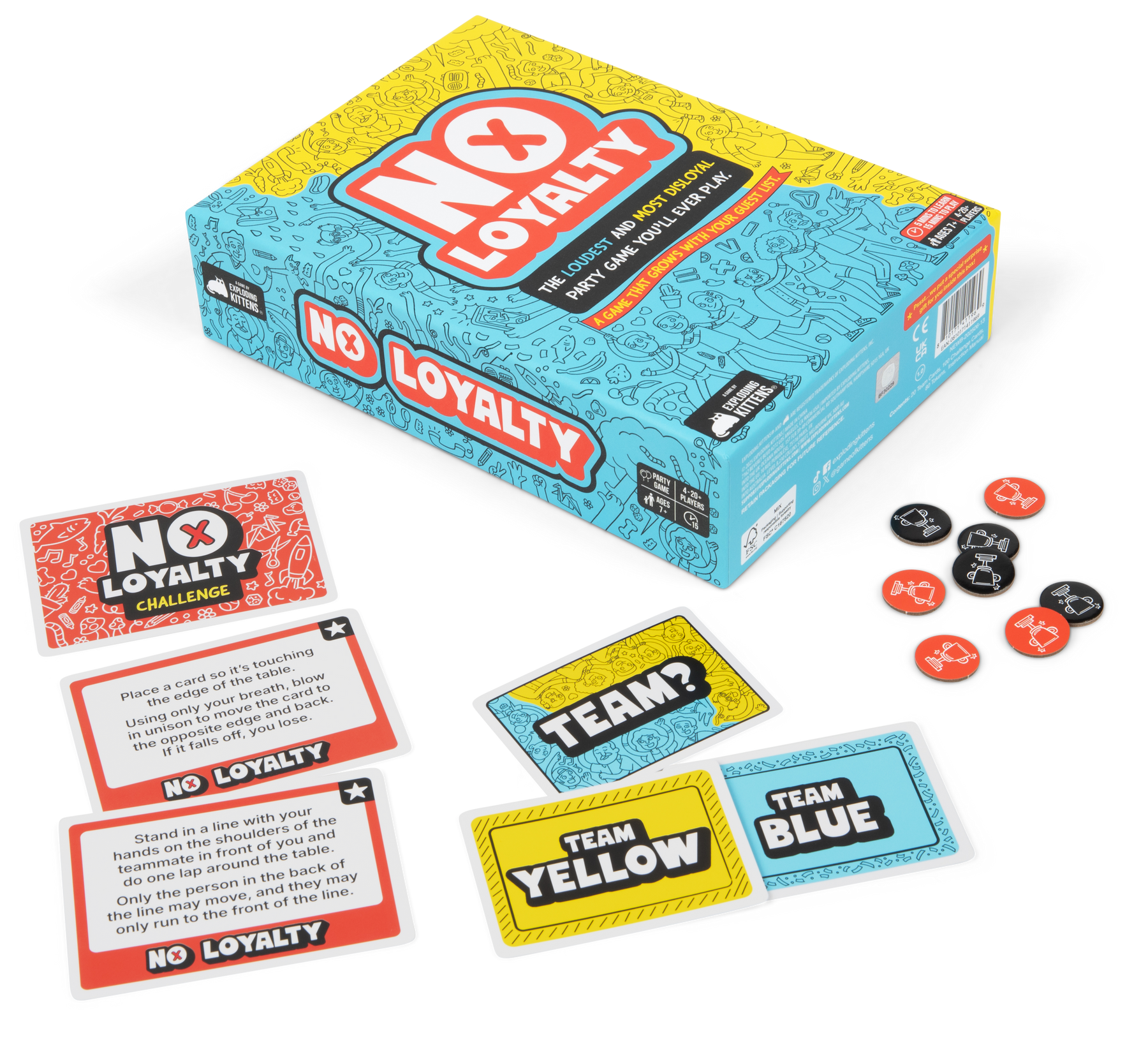 Flip a Challenge Card (ex. Stand in line from shortest to tallest) and deal everyone a Team Card. On the count of 3, flip your Team Card and race to find your teammates and complete the challenge before your opponents do.